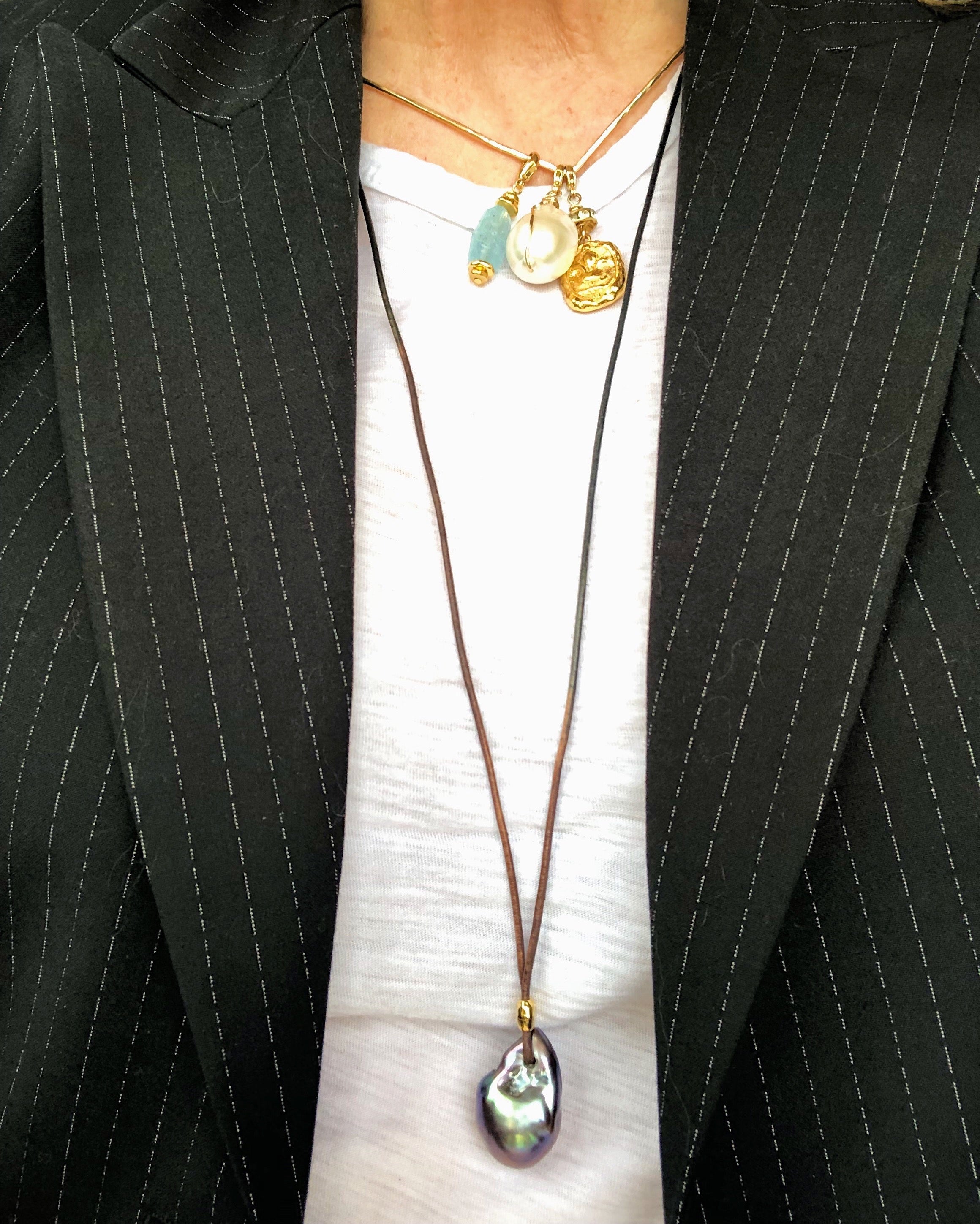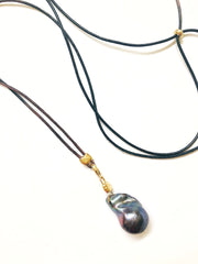 Adjustable leather chain to wear with ZD pendants. We love wearing this with the Peacock baroque Pearl Pendant and layered with the Essential Oblong Convertible Chain.