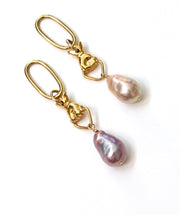 Blush-hued baroque freshwater pearls are now in our customer favorite Hand + Pearl Open Link Charms. Slip onto your hoops or slide onto a chain as a pendant.