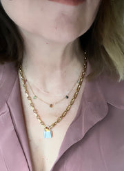 The sterling pad lock designed to enhance your necklace or use as a charm on your bracelet(No key needed). Shown on the Modern Link, the Signature Sterling and the Essential Shorter Chain.